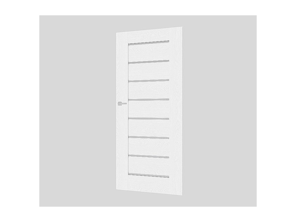 Dveře PREMIUM 13, 80P, dekor bílá struktura, výška křídla 2043mm, výplň 2 pásky skla, 6 hliníkových pásků. Zabalené.