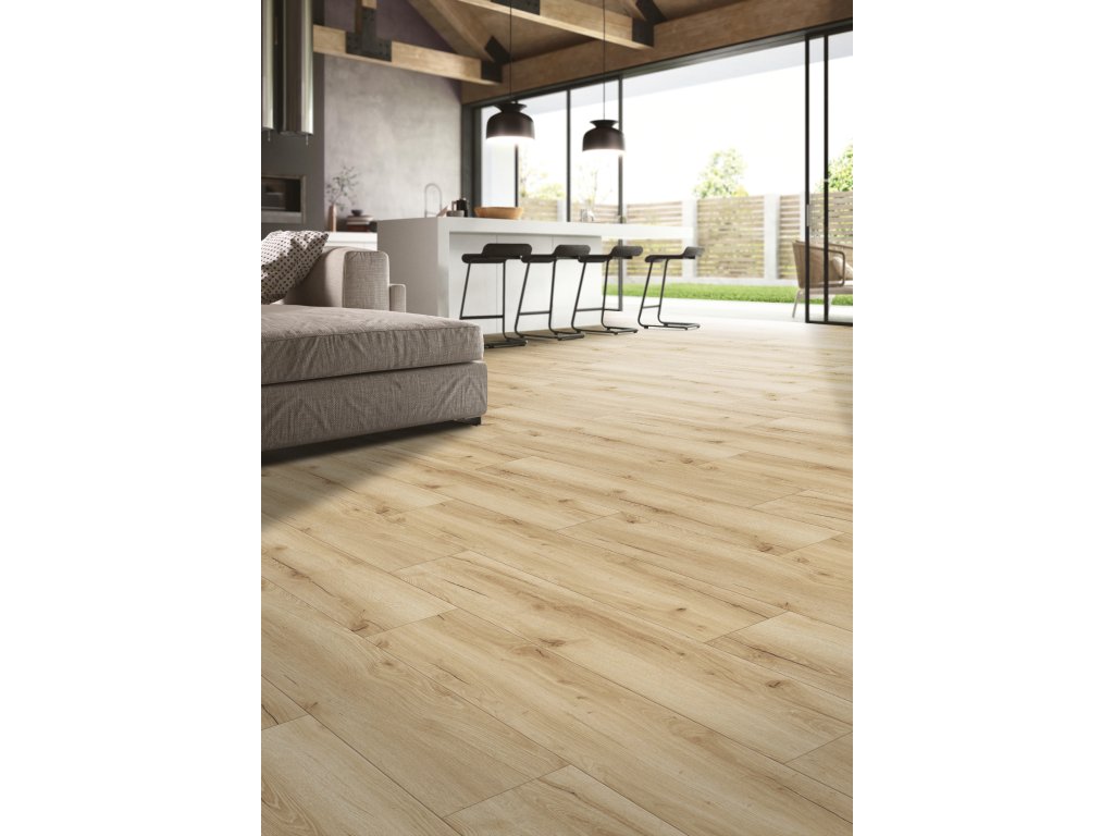 Podlaha je 100% voděodolná. K podlaze nabízíme originální soklové lišty v naprosto stejném moderním dekoru a tvaru. Podlaha splňuje nejvyšší nároky na emisní třídu A+ Phthalate free